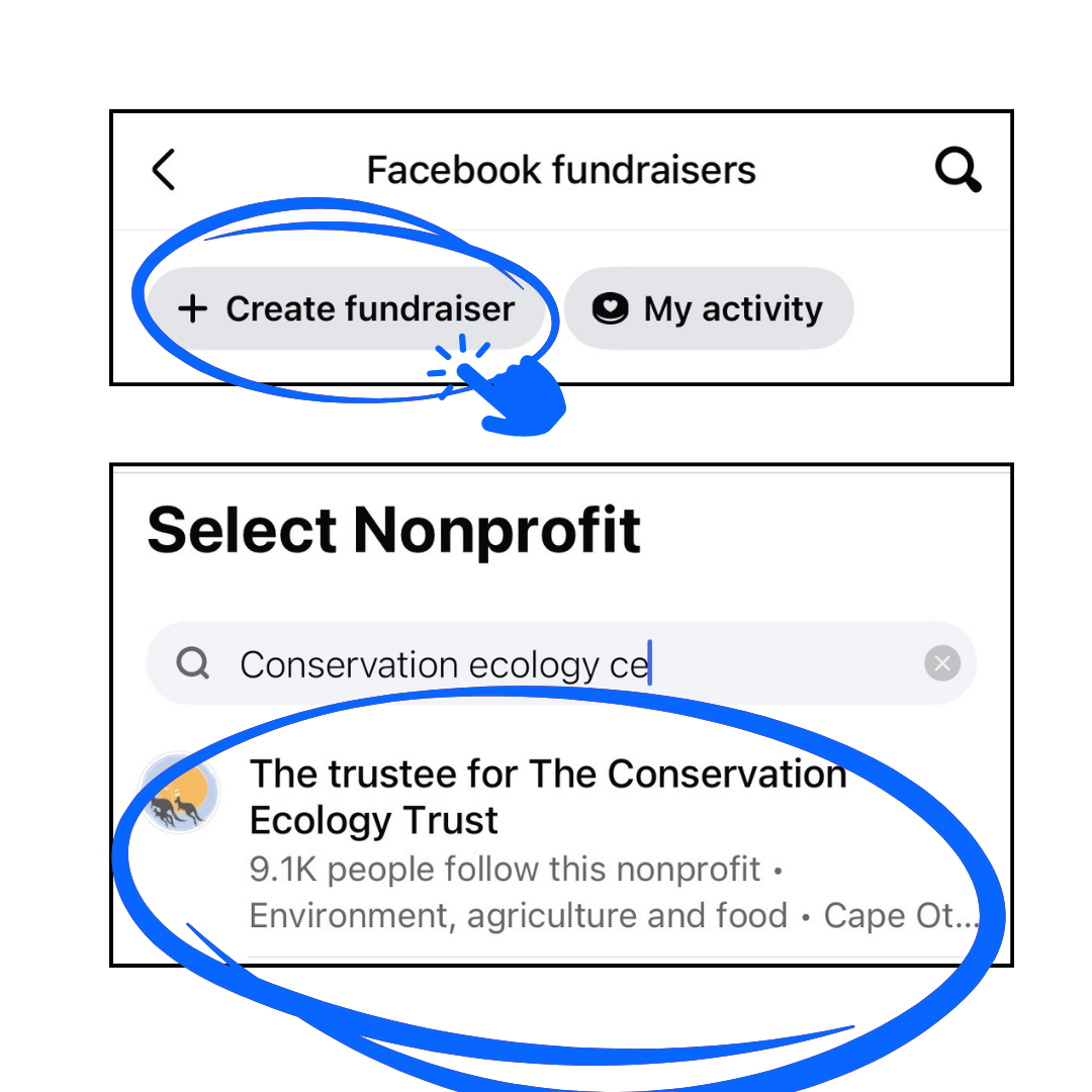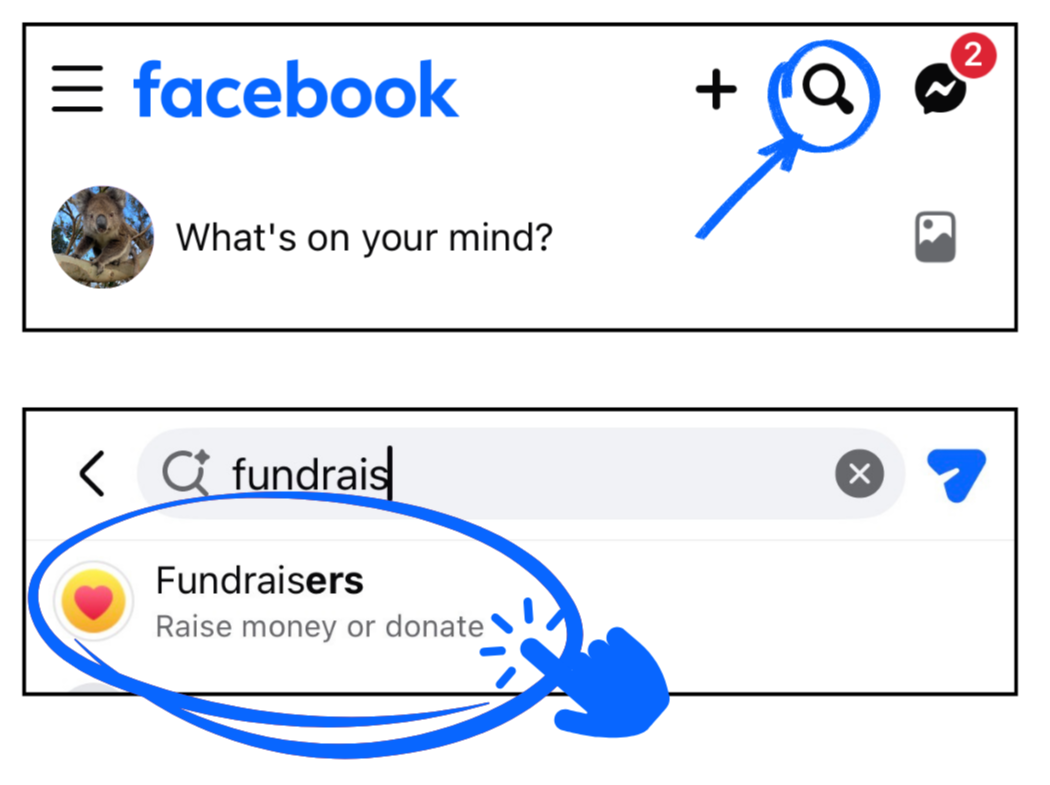 Log into your Facebook account and Tap the search icon (top right) and start typing Fundraisers then tap ‘Fundraisers’