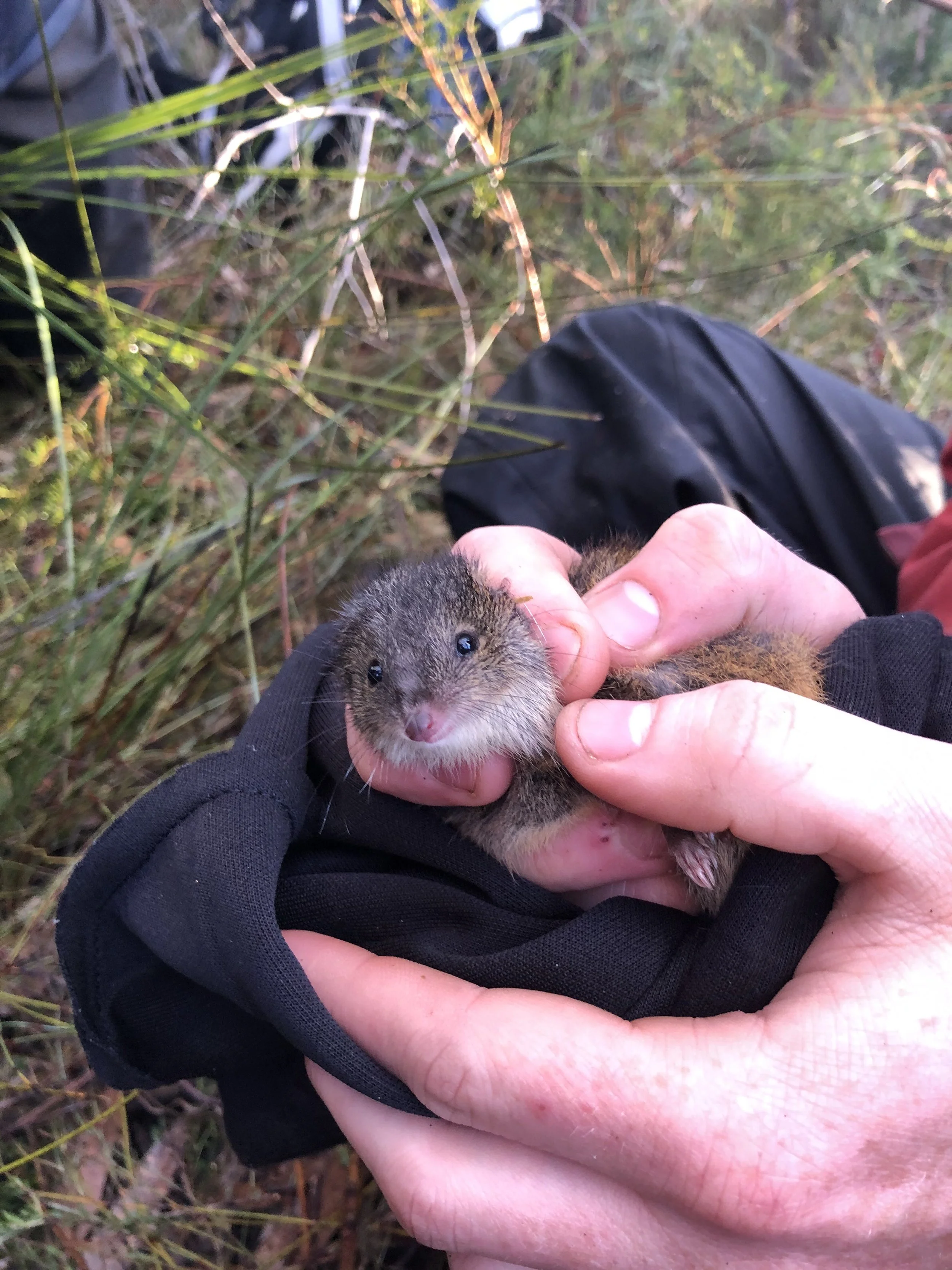 Our researchers have spent much of the past 10 years studying the Carlisle Heathlands, including the unique flora this area supports and the small mammals, such as the Long-nosed Potoroo who live there. And more recently, working with Traditional Owners to develop a vision for the biocultural management of this “Ground Parrot Country”.