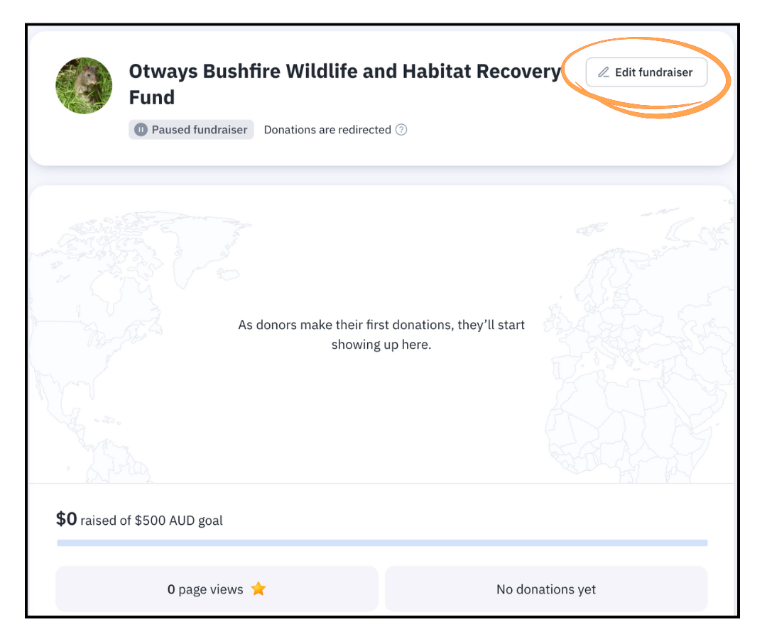 This is what your fundraising dashboard looks like. Here is where you will see when donations start to come in.