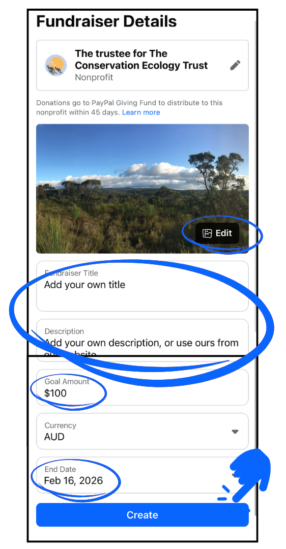 Tap, Create fundraiser.